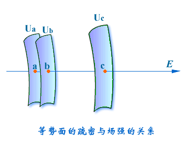 也就是说,等势面愈密(即间距愈小)的区域,场强也愈大。