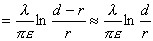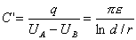 ( 因为 d>>r)由该两导线(相当于两极板)构成的电容器,其单位长度的电容为: