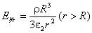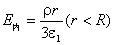 作业 04-11-03-06 一半径为 的电介质实心球体(见图),均匀地带正电,单位体积所带电荷为ρ(称为体电荷密度),球体的电容率为 , 球体外充满电容率为 的无限大均匀电介质。求球体内、外任一点的场强和电势。(提示:所作的高斯面分别为虚线所示的过球内、外场点 1、 2的同心闭合球面。)