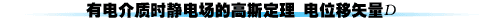 的大小;而 称为通过面积元 的电位移通量。因此,有电介质时静电场的高斯定理可表述为:通过有电介质时静电场中任一闭合面的电位移通量,在数值上等于该闭合面所包围的自由电荷之代数和(式3b)。这也表明电位移线从正的自由电荷发出,终止于负的自由电荷;而不象电场线那样,起迄于包括自由电荷和束缚电荷在内的各种正、负电荷。读者对此务须区别清楚。(请观看右上图的flash演示)