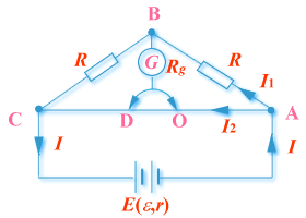 也就是通过 中的电流;且B、O两点的电势相等(这时称为电桥平衡)。故: