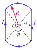 作业 04-13-05-06 一长直导线与一圆形回路分别载有电流 , ,放置如图,求圆形回路中心O点的磁感强度。