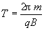 | 公式说明:带电粒子在磁场中沿圆形轨道绕行的周期与带电粒子运动的速率 |
