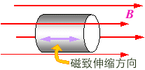 某些铁磁材料及其合金和某些铁氧体等都具有磁致伸缩的特性.如果在这些材料中沿着某一方向施加外磁场,则随着外磁场的强弱变化,材料沿此方向的长度就会发生伸缩。这种具有磁致伸缩特性的材料可作为超声波技术中的换能器,以用于超声波清洗和探测鱼群等.