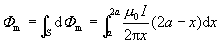 沿线框选定回路的顺时针绕向,按右手螺旋定则,回路所包围面积的法线方向垂直屏面向里,建立坐标如图所示的直角坐标系 Oxy,则 NP边满足的方程为 y= 2a-x, x处的磁场强度为