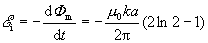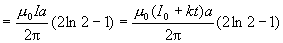 例题 04-15-02-02 如图所示,在通有电流为  (  、 k皆为正的恒量, t为时间)的长直导线近旁有一等腰直角三角形线框 MNP,两者共面, MN与直导线平行,且相距为 a,三角形的直角边的长也是 a。求线框中感应电动势的大小和方向。