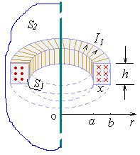 首先,假设长直导线本身就是一个很大的闭合回路中的一部分,只是此闭合回路的其它部分离螺绕环很远,它们彼此之间的相互影响可忽略不计。