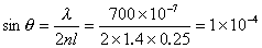 这样小的角度通常不易测出,而用本例所述光的等厚干涉方法测量却很简便。