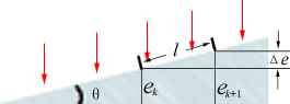 解: 在楔形板的表面上取第 级和第 级两条相邻的明条纹,用 、 分别表示这两条明条纹中心处楔形板的厚度,则 , 两式相减,得