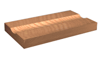 为保证同一干涉条纹下的空气膜厚度相等,则干涉条纹弯曲部分对应的工件表面必定凹,且偏离直线部分越远的地方凹得越多,因此工件表面有一垂直于劈棱的凹槽。