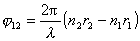 式中为这两束相干光在真空中的波长, 是由于它们在两种介质中的传播路径(波程)不同所引起的光程差,用 表示,则