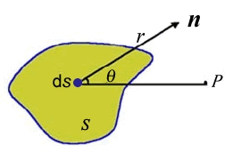 波在前进过程中,引起前方某点  的总振动,应为波面  上各个小面元  所发出的子波在  点引起的各分振动的总和。
