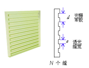 光栅是由一系列等宽等间距的平行狭缝组成,在1cm 的长度上往往刻有几千条甚至上万条的刻痕。刻痕处不透光,未刻处透光,我们称之为透射光栅,另一种光栅是反射光栅。