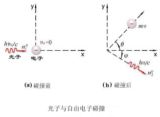 1. 经典电磁场理论的困难:电磁波通过物质时,引起物质中带电粒子的受迫振动,向外辐射电磁波,形成散射X射线。因此,散射X线应与入射X线同频率,而不会出现大于的散射线的波长。 2. 用光子的概念来解释:光子与散射物外层电子弹性碰撞后光子沿φ角散射出去,能量被原来速度近似为0的电子夺去一部分, 因而光子能量减小为, 因此散射光波长大于入射光波长。
