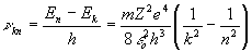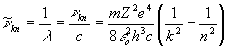 也可用波数表示为: 在一次跃迁中,一个氢原子只能发出一条谱线,而通常在实验中观察到的是大量氢原子处在不同受激态向低能级跃迁时同时发出的光,所以能同时观察到全部谱线。 |
