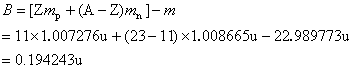 解:(1)钠核的质子数 Z=11, 中子数 N=A-Z=32-11=12, 质子的质量 。 可求得钠核的质量亏损为 又 所以,钠核的质量亏损为 (2)钠核的结合能为