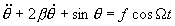 3.有阻尼有驱动情形 当驱动力为无周期驱动力时,系统的相轨道不相交,相空间是二维的。 系统为周期性驱动力时,相空间仍是二维的,但相轨道可以相交。 在任意大振幅下受驱动阻尼摆的运动十分复杂,其运动方程为前面的方程(1)