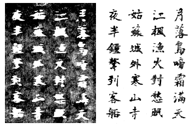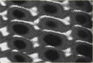 光学信息处理是对二维光学图像或光波的振幅分布进一步的处理。这种处理是在阿贝成像系统的后焦面、即频谱面上设置各种滤波器,从而可对信号频谱进行改造,滤掉不需要的信息或燥声,提取或增强我们感兴趣的信息。滤波后的频谱还可以再经过一个透镜还原成为经过修改的图像和信号。 光学信息处理可分为大两类: (1) 光学图像处理,被处理的对象是光学图像,包括照片、底片、图片等。 如:改变图像的反差,使模糊图像清晰化,消除图像中的噪声,图像相加减,特征识别,对黑白图像进行假彩色编码,等等。右图就是一幅模糊的唐诗碑文用滤波法清晰化处理的实例。 (2) 被处理信息是其它类型的信号,这些信号必须首先转换成光信号或光学图像,然后用光学信息处理系统进行处理。 如:电信号(电压、电流),机械信号(重量、长度、角度、速度、应力应变),声音信号,温度信号… 假彩色是一种常用的光学图像处理,它是光学专家按照不同的要求,将黑白图像改变各种各样的彩色图像,这些图像中的颜色并不代表物体的本色,而被光学专家们赋予了新的含义。例如,用红色表示单色光图像中的“黑”色(不透光),用绿色表示单色光图像中的“白”色(全透光)。这一技术因此而被称为黑白图像的“假彩色处理”。下图就是石墨样品表面STM照片的原图和假彩色图,我们可以从中看到假彩色处理与黑白图像的对应关系。